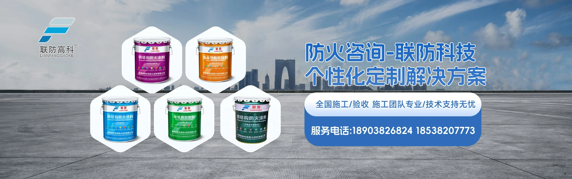 河南联防科技防火材料有限公司成立于2012年8月,属《高新技术企业》、《ISO管理体系认证企业》、《河南百佳优秀企业》、《[品牌强国 ] 优选示范企业》、《AAA认证》、《标准创新发展先进企业》,荣获《中国驰名品牌》、《中国防火涂料行业十大品牌》、《中国绿色节能环保品牌》、《中国著名品牌》、《政府采购优秀供应商》等荣誉称号,为《应急管理部消防产品合格评定中心》认证产品,《中国行业技术创新产品》、《国家消费及阻燃产品质量监督检验中心》形式检验产品等。 公司秉承“ 以客户为中心、以质量求发展、 以科技为先导”的宗旨。公司产品品类、型号齐全,拥有防火涂料《型式检验报告》30多项、国家专利30多项,国家CCCF认证及《消防产品型式试验》产品。